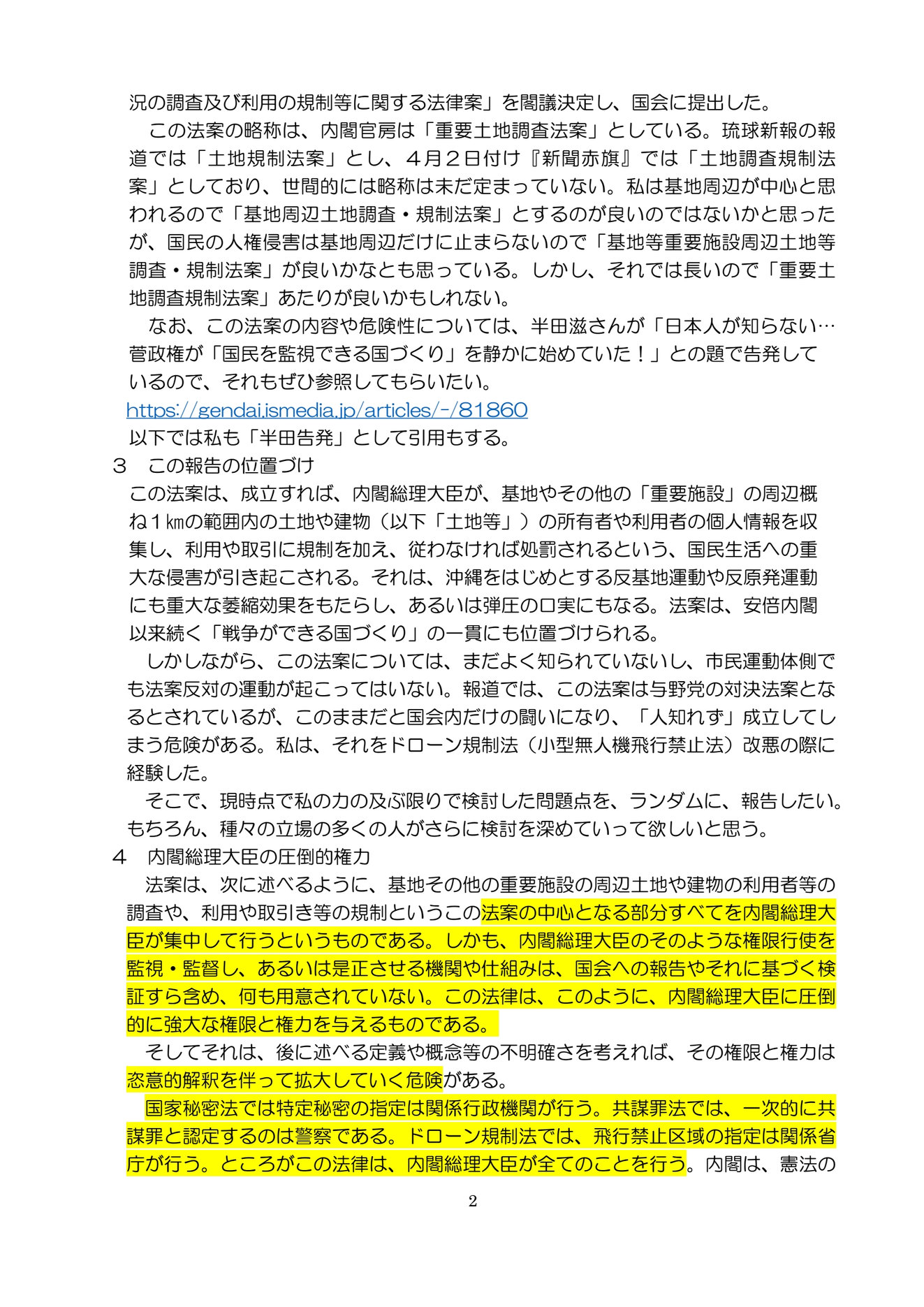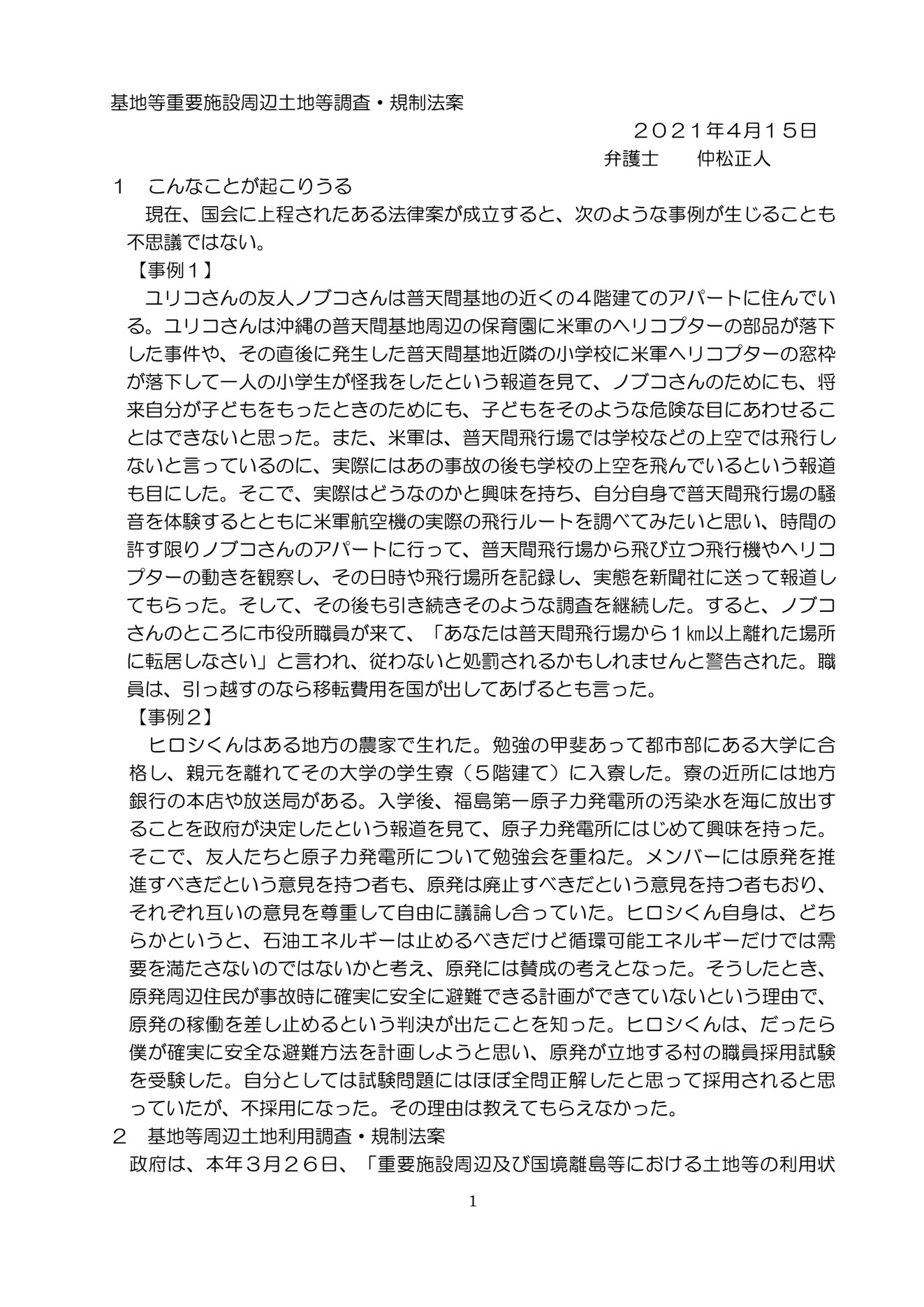 ①仲松正人弁護士 4月15日「基地等重要施設周辺土地等調査・規制法案」