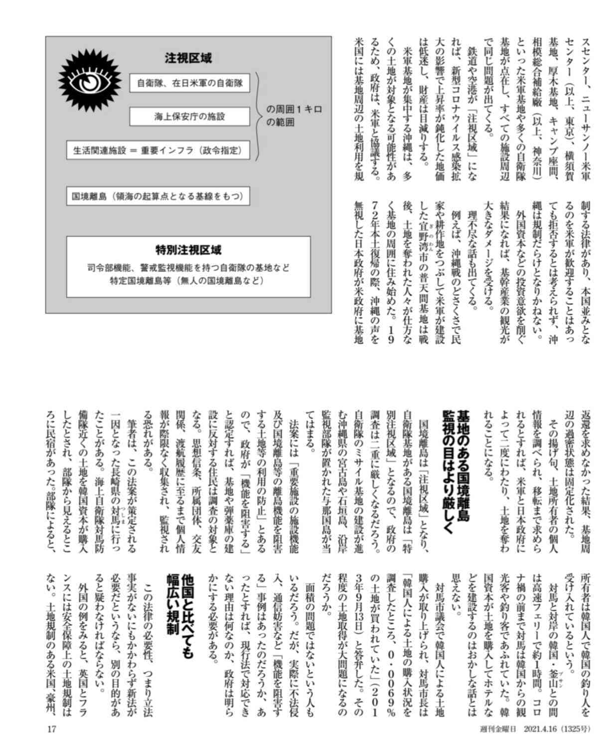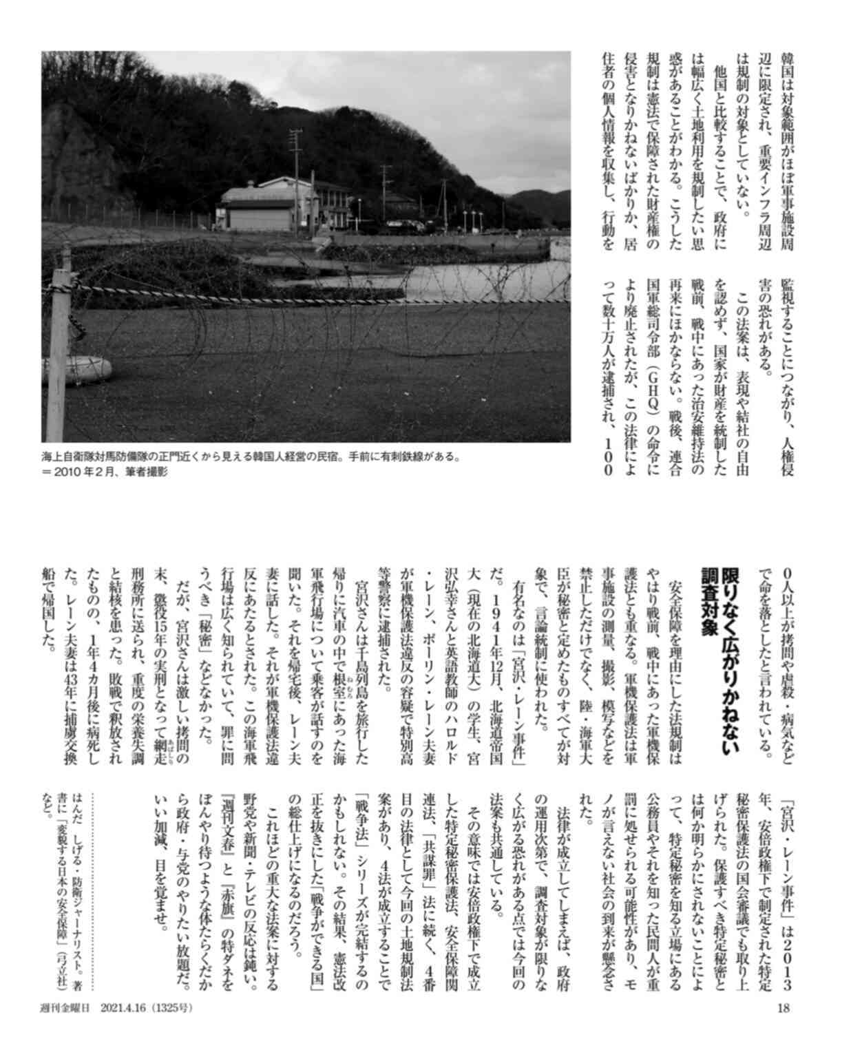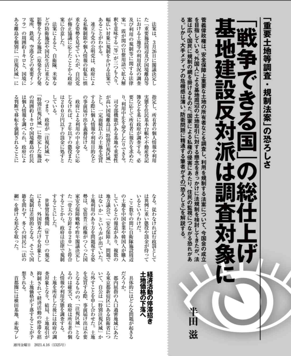 ②半田滋さん「重要土地規制法案」4月16日「週刊金曜日」1325号